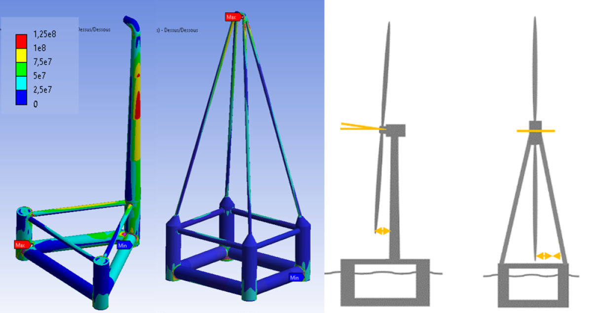 Thiết kế chong chóng quạt trên một cây cột điển hình được sử dụng cho các tua-bin gió trên bờ không phù hợp khi ở ngoài khơi, nơi có nguồn năng lượng gió dồi dào. Khi mực nước quá sâu, để neo một cây cột khổng lồ dưới đáy biển, việc này sẽ cần một lượng lớn vật liệu dằn ở phía dưới.